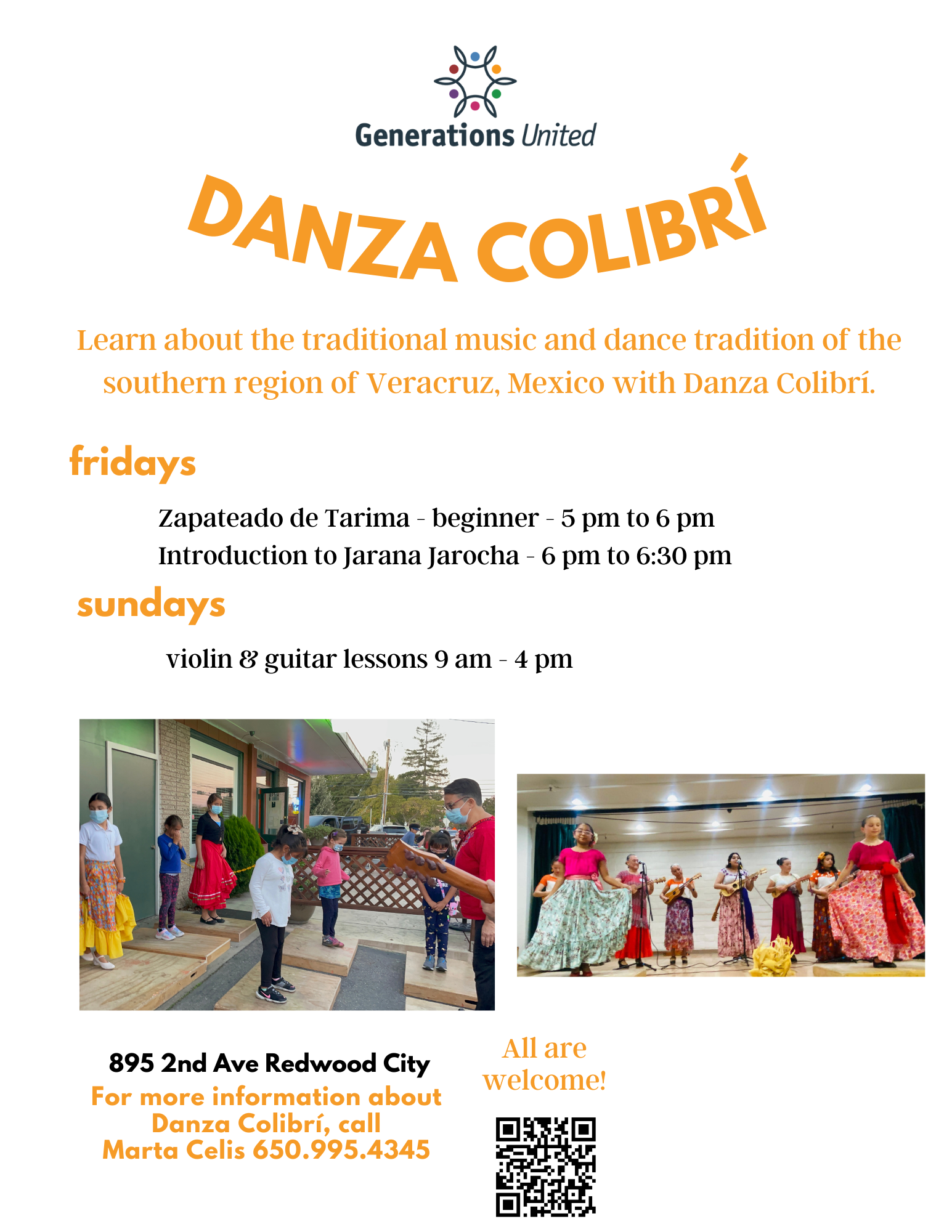 Danza Colibrí teaches traditional Mexican dancing from the Veracruz region and provides opportunities for dancers of all ages and skill levels.
