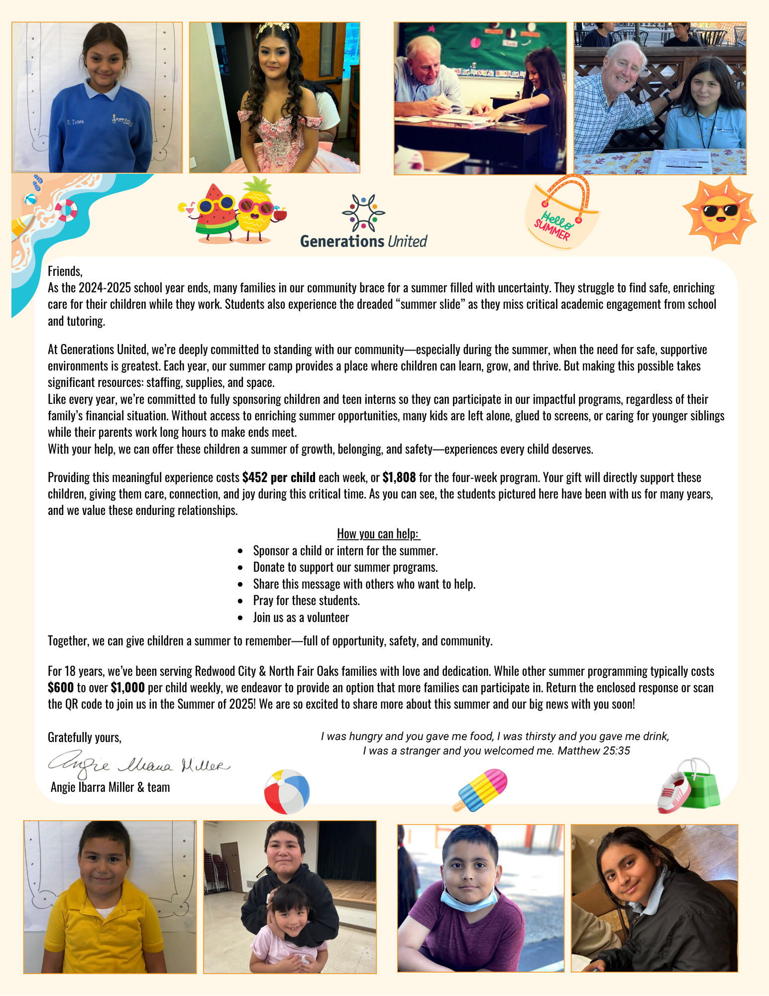 Summer usually means fun in Redwood City and North Fair Oaks, but not necessarily for everyone. Generations United is committed to providing safe spaces where the fun of learning can continue, even after the school year ends. In 2025, we have an incredible partnership with Hope Horizons in East Palo Alto and many of our students are also participating in summer programs at their school. We continue to offer one-on-one tutoring sessions with volunteers to keep students engaged in learning.